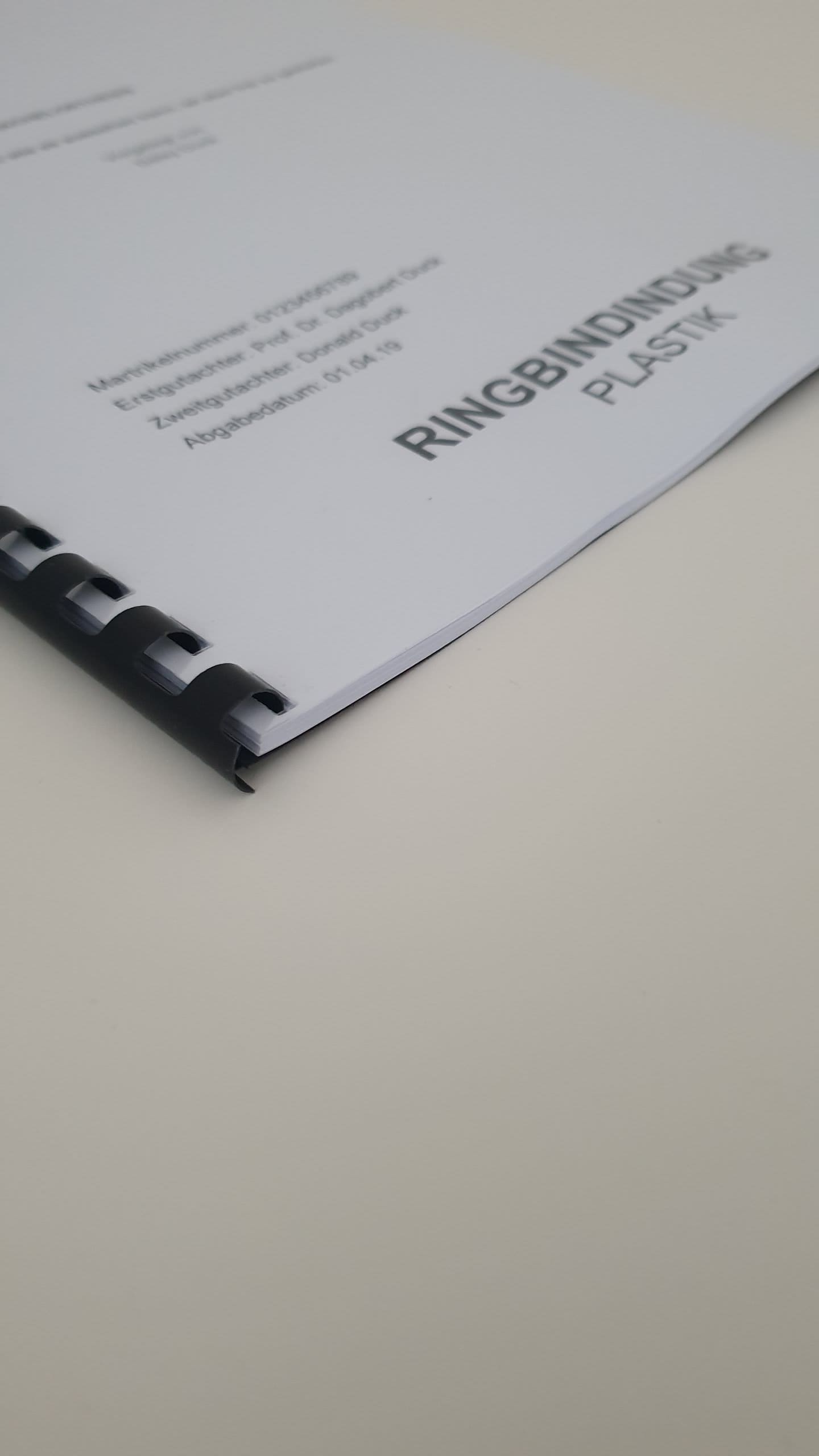 Abschlussarbeit | Plastik-Spiralbindung 201 bis 400 Seiten | unbedrucktes Cover